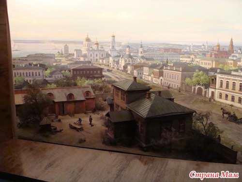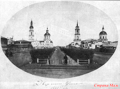 Снимок сделан с крыши старого симбирского театра. Это было двухэтажное деревянное здание, расположенное поперек улицы, напротив нынешней гостиницы "Волга". Заезжие москвичи и петербуржцы отзывались о труппах, которые играли в театре, с похвалой. Новый каменный театр был построен в Симбирске только в 1879 году. Надо полагать, что в 70-х годах в старом городском театре не раз бывали и Ульяновы. 1867 г. Фото А. Муренко