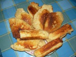 Сосиски в тесте: сосиски положить на край лепешки и замотать ее в тесто.