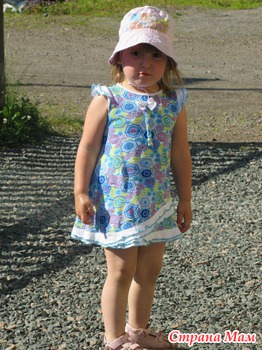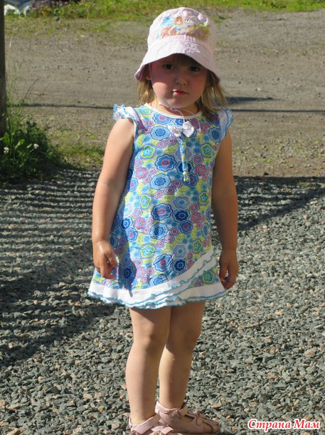 Платьице №1. Хорошенькое, подойдет на худенькую девочку, нам немного в облигон. Немного горловина туговато одевается.