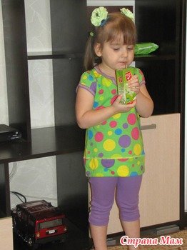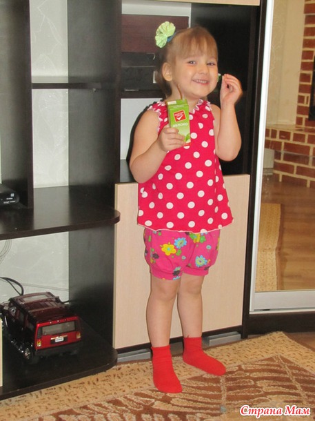 Ещё одни шортики и футболочка(тоже продавались по отдельности). Шортики(скорее бриджики) нам, конечно, большие... они простенькие, без прибамбасов, но моей доче они больше всего приглянулись... до сна не хотела их снимать.
