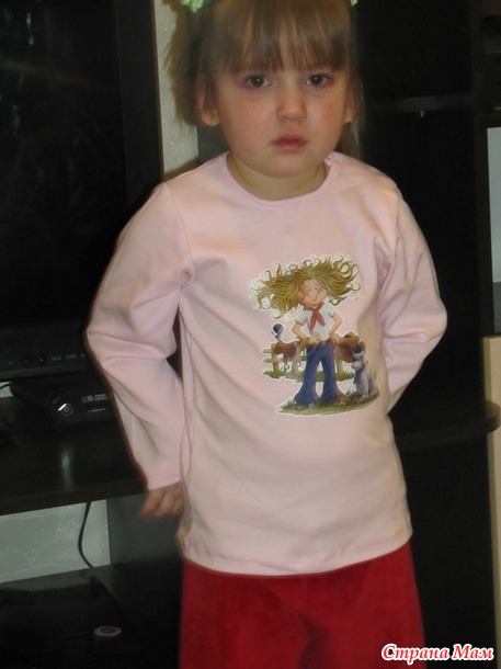 Футболочка яркая, просторная, как раз для моей шилопопы.