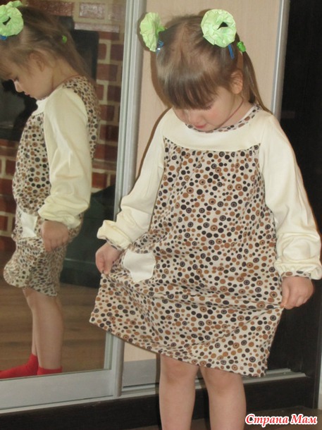 Платье №3. Нам большевато, но мы и до него дорастем. Симпатичная расцветка нам попалась...
