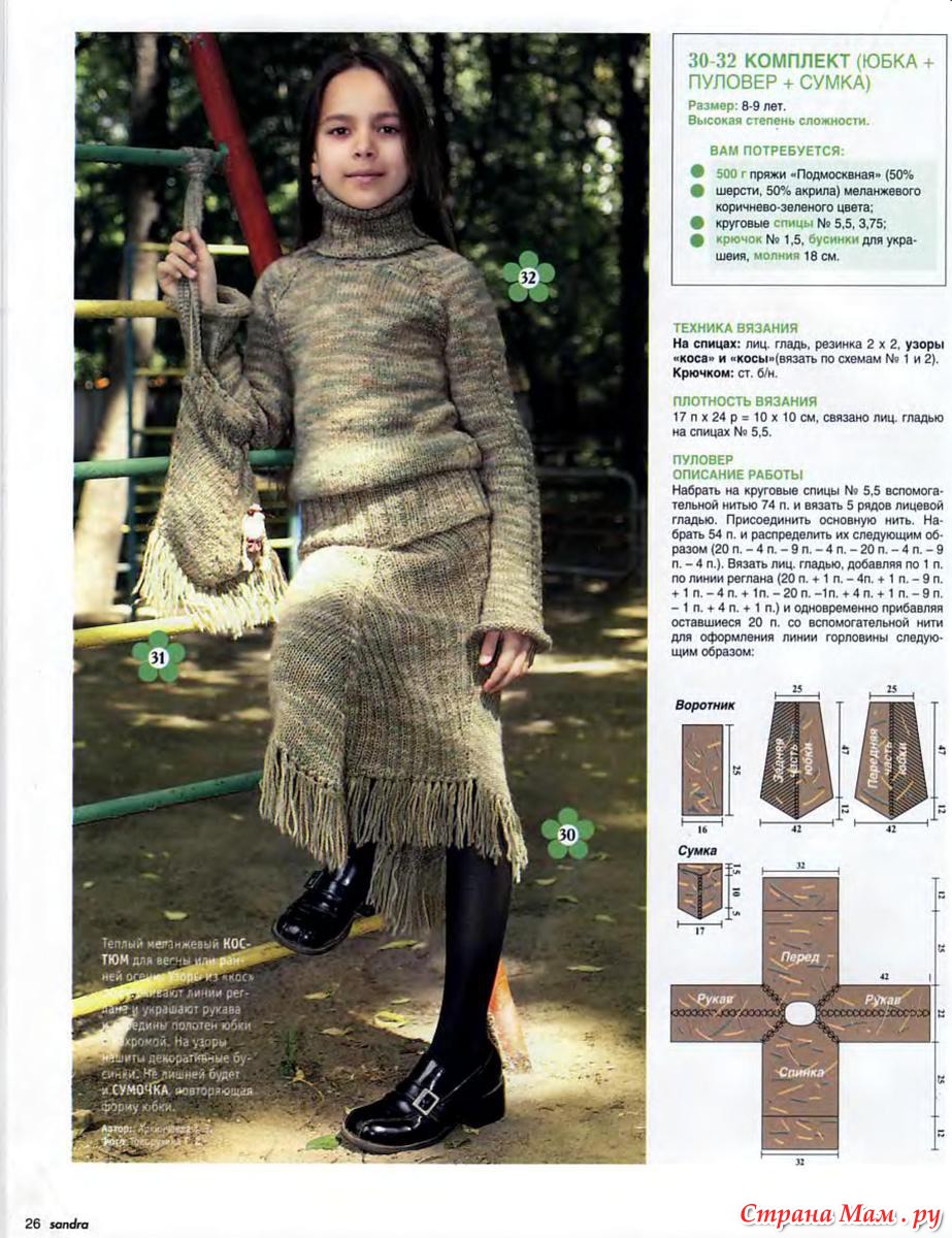 Тэги: для девочек, костюм, спицами, юбка, пуловер, ободок, сумка, жаккард, жилет