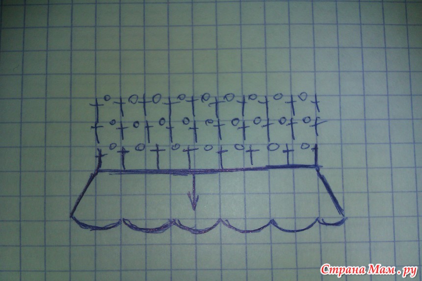 Начинаем вязание с юбки. Юбка вяжется снизу!