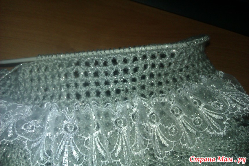 Ввязываем гипюровую ленту (можно взять пряжу Тюль Фир-Фир Гипюр, я брала обычную ленту). лента ввязывается по принципу юбочек из Дантеллы.