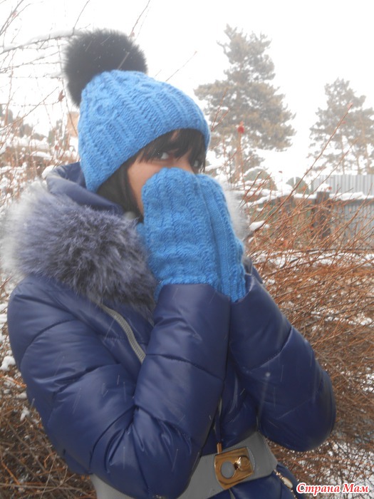 Купила дочурке новую куртку ну и конечно пришлось сразу же вязать к ней шапку, а к шапке- варежки, ну и гетры для полного комплекта.