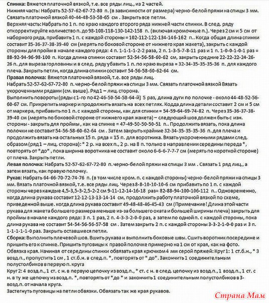 Этот конкретно жакет связан по переведенному описанию.Так как наверняка оно(описание)взято из иностранного журнала а там одежду демонстрируют девушки а не манекены.В журнале жакет связан из черно-белых ниток а эта мастерица взяла ту пряжу которая была ей по нраву.