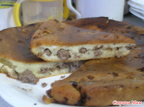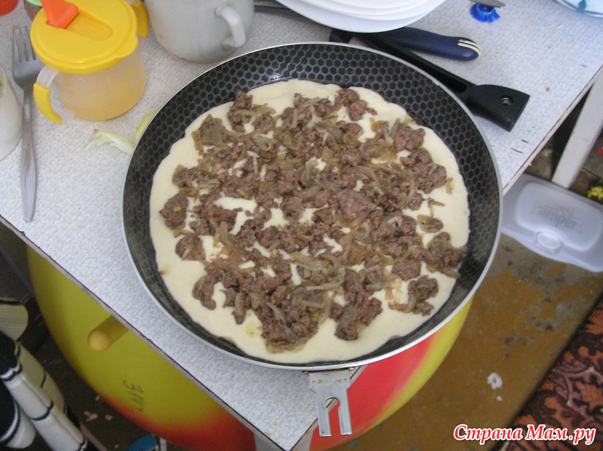 В форму вылить половину объема теста, положить начинку, сверху залить оставшейся порцией теста. Выпекать 20-30 минут. Я делала с мясом и грибами (предварительно обжарила). Изумительно вкусно!!!