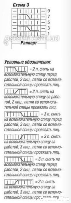 Плотность вязания, узор по схеме 2: 12 п. и 20 р. = 10 х 10 см.
