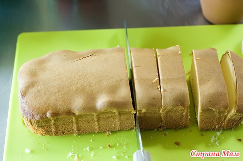 Нарезаем кекс ломтиками толщиной 2-4 см.