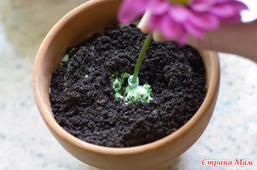 И аккуратно засыпаем печеньем видимую часть трубочки. Цветок должен как бы расти прямо из «земли».