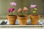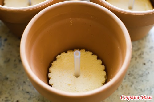 Диаметр кружков должен быть чуть меньше, чем внутренний диаметр дна горшка. Укладываем их в горшки.