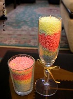 Для работы потребуется: воск нескольких расцветок, терка, тонкая свеча, фужер: