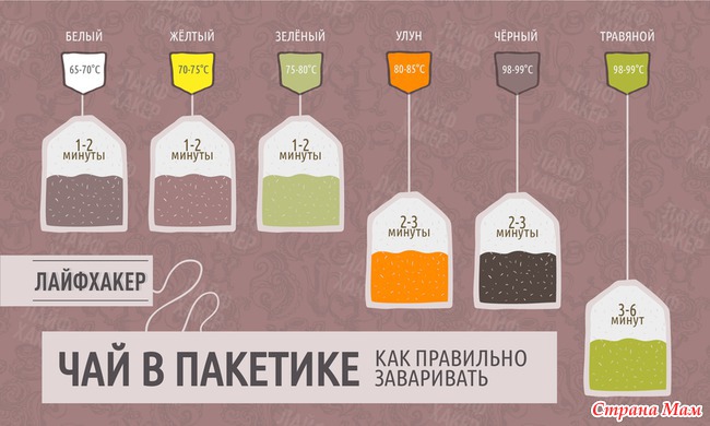 Эта картинка поможет вам запомнить раз и навсегда, какой вид чая, сколько минут нужно заваривать.