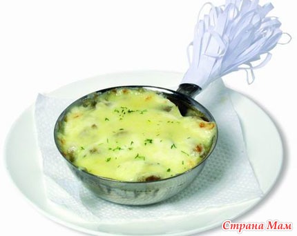 Разогреть на сковороде немного растительного, можно и сливочное. Поджарить до золотистого цвета 2 ч.л. муки. Грибы (шампиньоны) порезать пластинами. Можно взять консервированные уже нарезанные. Поджарить грибы с мукой. Взбить 2 яйца, добавить к ним 2 ст.л. майонеза или сметаны, в эту смесь можно также добавить сыр натертый на мелкой терке. Залить грибы яичной смесью и поставить все в духовку, запекать до образования румяной корочки. Приятного аппетита.