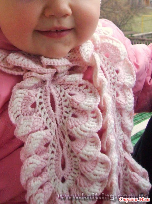 А оборочка вяжется так : в каждую петлю провязываешь по 3 столбика с1накидом и так вяжешь три ряда и потом петли так заворачиваются