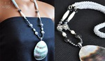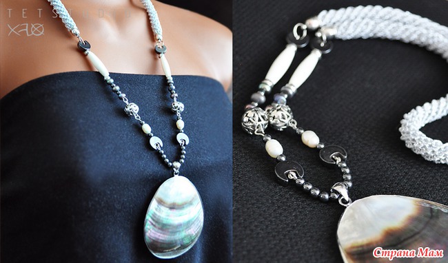 Длинное колье с речным жемчугом и подвеской из перламутра