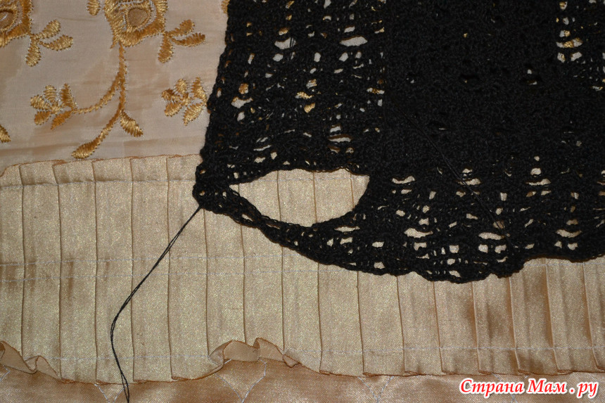 Для тех, кто вяжет также, как и я тоненькими (может и для других нитей подойдет), в первом ряду, там где делаем арочки, лучше делать соединительные столбики в каждую четвертую, а не в пятую. Тогда оно так не стягивает.