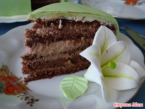 Бисквит разрезать на три части, каждую пропитать сиропом и промазать кремом.