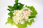 Салат овощной с сыром и ветчиной