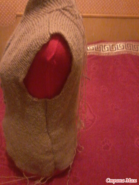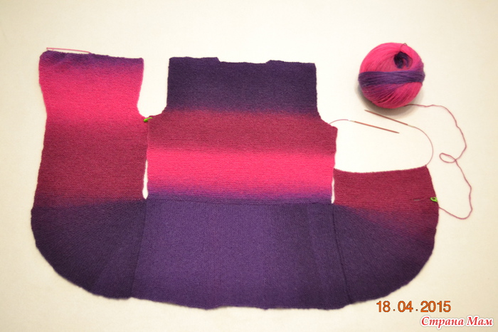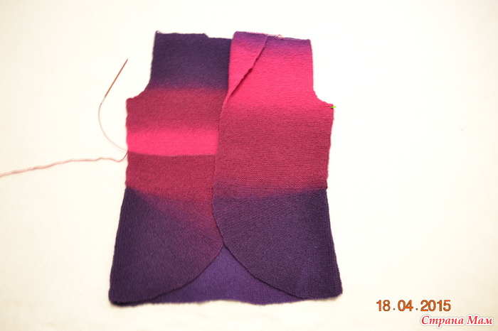 Проймы я вывязывала как написано в описании, т. е. с каждой стороны закрыла один раз по 4 пет, потом 5 раз по 2 пет.