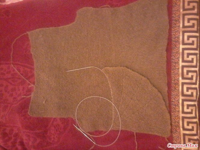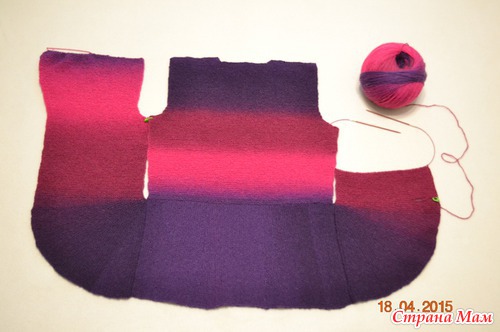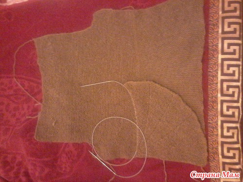 Итак, петли набираем по кромочным нижней части спинки. У меня 220 рядов в нижней части, значит петель получится набрать в два раза меньше - 110 пет. + по 4 петли с каждой стороны я еще добрала. = 118 пет.