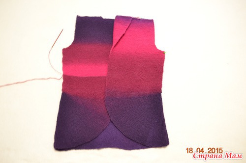На этом фото я хотела показать откуда нужно набирать петли для верхней части спины и где находятся кромочные петли(красные галочки)
