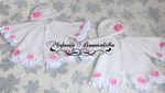 Шапочки вязала без схем, просто чтобы рисунок не отличался от платьев, обычные столбики с накидом...