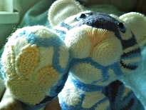 Игрушка-Тигрушка, пошит,а затем обвязан крючком, наполнитель- синтепон. Длина игрушки, от носа до попы,-30см.