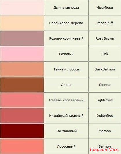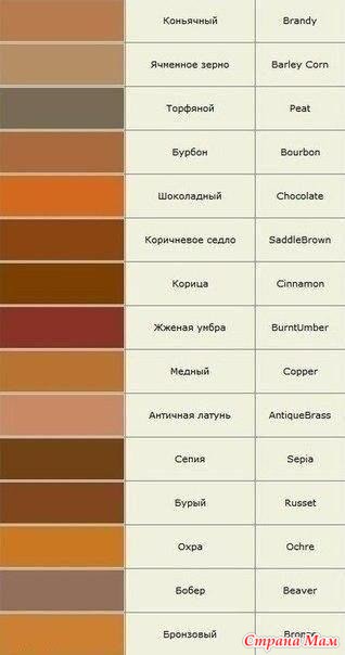 Каждый из нас не раз впадал в ступор при попытке назвать цвет или оттенок пряжи. Вот и со мной недавно такое случилось, а сегодня наткнулась случайно на названия цветов и оттенков.