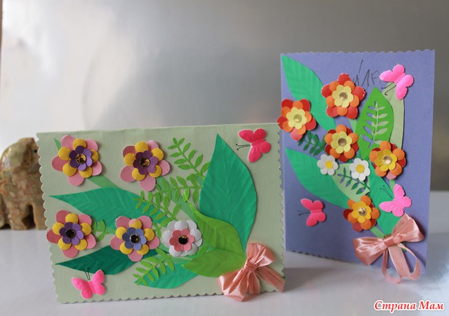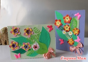 Эти открыточки сделали дети для мамы на 8 марта, но я думаю что такую открыточкуможно подарить не только на 8 марта.