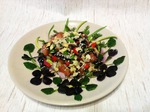 Капусту и дайкон нарезать соломкой,огурцы и помидоры,перец,яблоко кубиками.