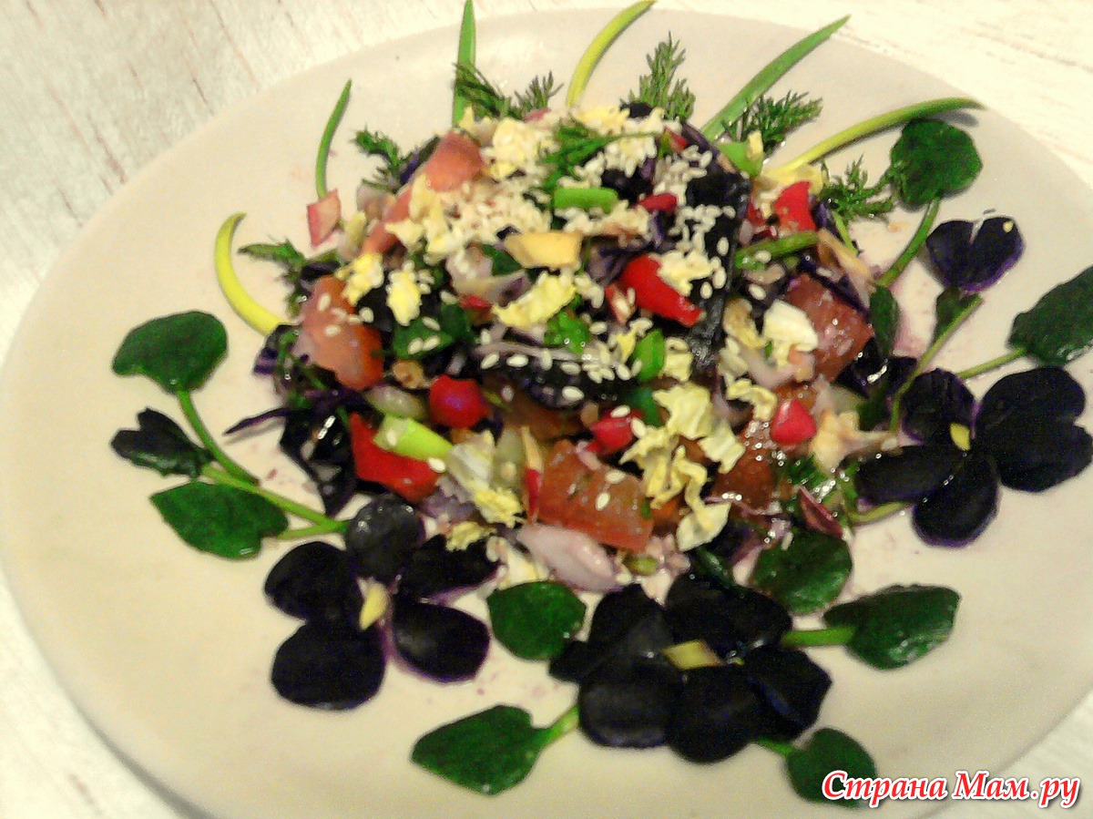 Зелень мелко порезать.Заправить заправкой,посолить по вкусу,посыпать кунжутом.