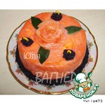 Салатницу убираем на несколько минут в морозилку. Затем переворачиваем на тарелку и декорируем, я из рыбы сделала розочку и украсила икрой черной, но можно и без нее, поэтому в рецепте ее не писала.