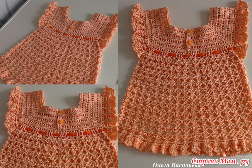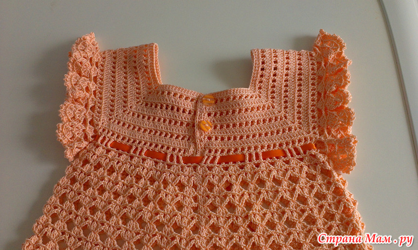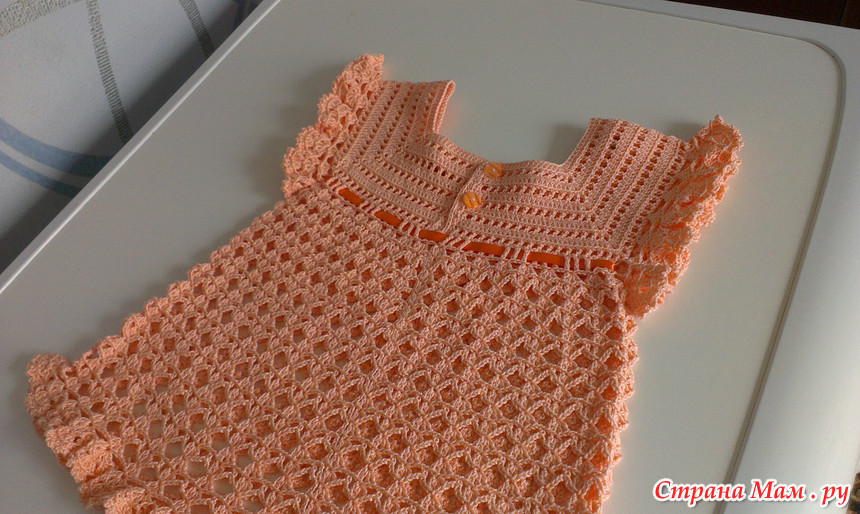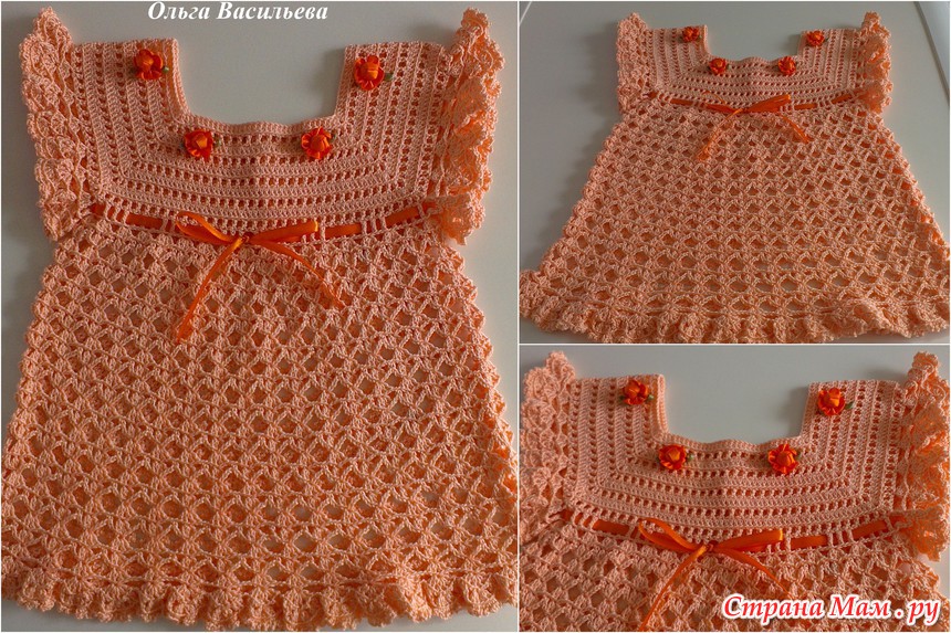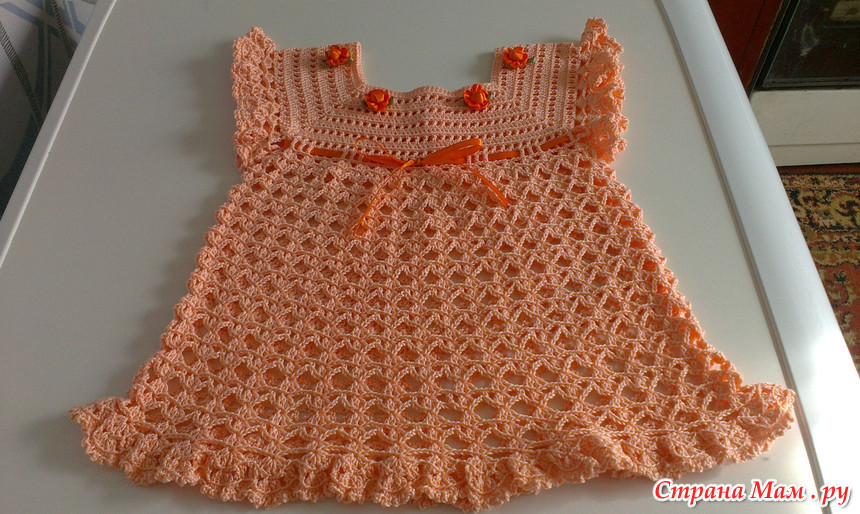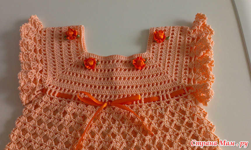 Связалось у меня еще одно платьице в подарок для малышки, которая родилась раньше положенного срока. Наша малышка еще и не думает рождаться, а маленькая Софья приходит в себя после двусторонней пневмонии. Дай ей Бог здоровья и скорейшего выздоровления.