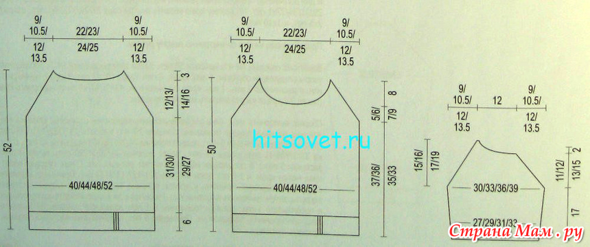 pulover_vkПеред: вязать как спинку, на высоте 37/36/35/33 см от наборного края закрыть с обеих сторон 1x2/2/3/3 пет. Затем для реглана убавить в каждом 2-м ряду 18/21/23/25x1 пет. Вырез горловины: одновременно с 7-м/9-м/11-м/13-м убавлением закрыть средние 11/15/19/23 пет. и с обеих сторон в каждом 2-м ряду 1x5 пет., 2x3 пет, убавить 4x1 пет. Затем убавить еще 2x1 пет. в каждом 4-м ряду.