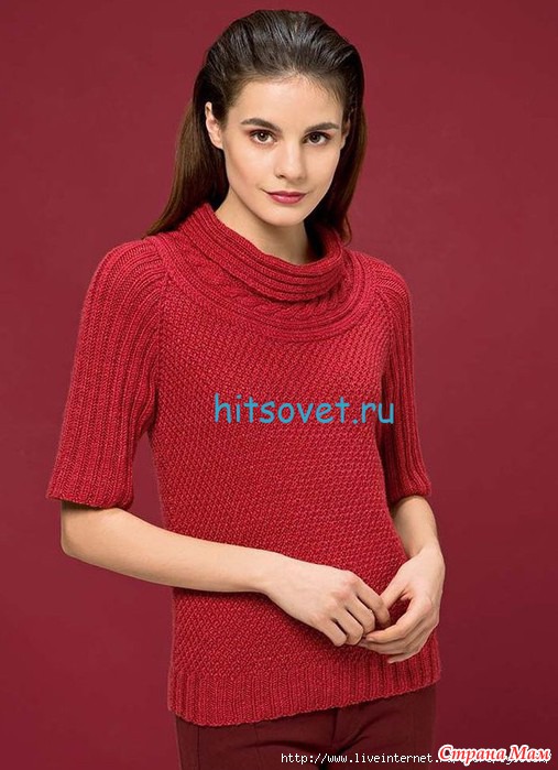 Для вязания женского пуловера Вам потребуется: пряжа LANG YARNS SILKMERINO (тонкая мериносовая шерсть, шелк, полиэстер) 300/350/400/450 г = 6/7/8/9 мотков красного 888.0060. LANG YARNS, спицы № 4,5 и 5.