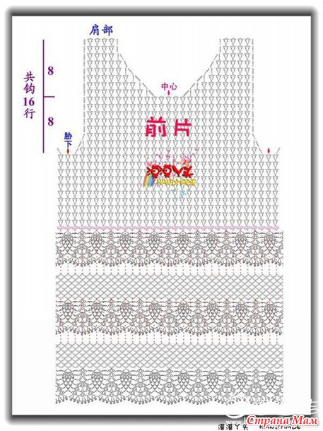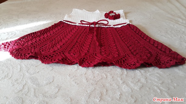 А во втором платье сделала на 1 раппорт больше (12 всего), поэтому вязала без расширения полосы. Также в основном 5-6 ряды и в конце 11-12