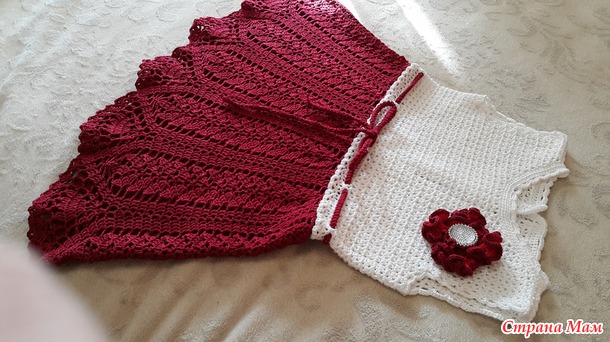 Совет небольшой, я много времени потратила, перевязывая, чтобы вычислить оптимальное количество раппортов на юбку. Вот для кокетки моих размеров (ПОГ 52 и 54 см) лучше всего 11-12 раппортов. Больше- черезчур пышно и долго вязать и расход большой.