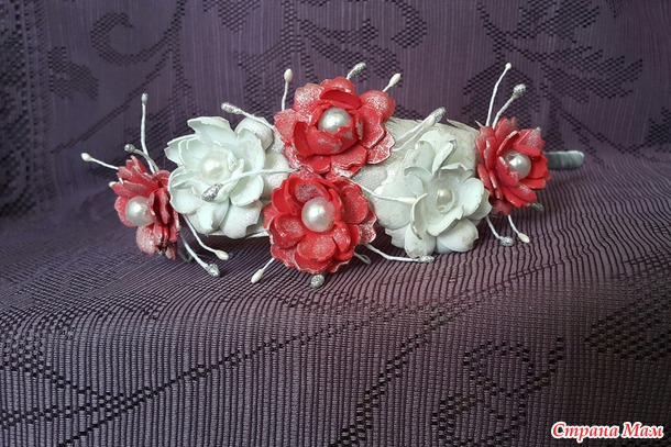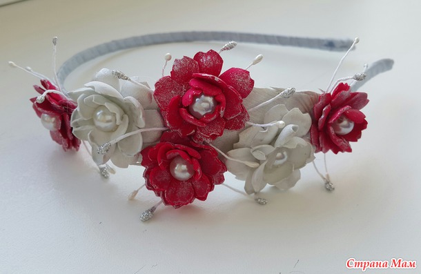 И в комплект на голову вот такие ободки, цветы из фоамирана.