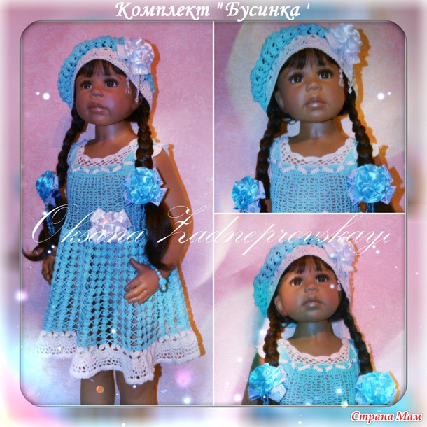Девочки из Страны мамочек, здравствуйте, сегодня закончила свою новую работу комплект"Бусинка" из ниточек Alize miss, цвет взяла молочный и бирюза, в комплект входит платье длиной 45 см и беретик. Рост куколки 90 см. Выношу на ваше обсуждение, очень хочу знать Ваше мнение, я человек адекватный, критику воспринимаю нормально. Приглашаю на свою страничку для просмотра моих работ, возможно кому-то пригодятся мои модельки платьев для малышек. Спасибо, с уважением ко всем.
