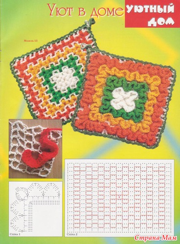 Очень уж мне понравилась такая прихватка. И простенькая, и вариантов предусматривает массу... А при наличии фантазии можно придумать и другое применения типа: подушечки на детский стульчик под любимую попку...