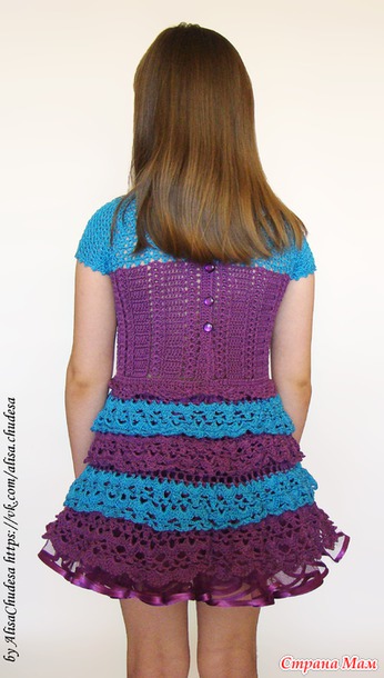 Авторское платье "Лолита" на 4-6 лет, пряжа голубая Нарцисс от Кировского комбината 100г-400м и Пехорка "Успешная" 50 г -220 м, 100% хлопок, крючки 2 и 2,5