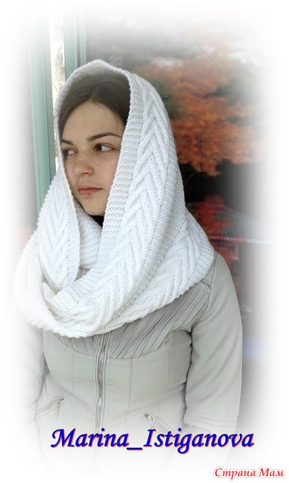 Только в косах я сделала изменение - вместо 3-х перекрещенных петель я делала по 2, т.е моя коса 16 петель, а не 24 (у меня ниточки толстые). Набирала всего 80 петель в ширину.