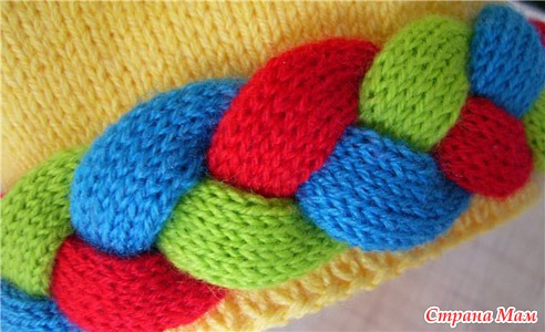 6. Для косы вяжем три полоски по 19 петель лицевой гладью.