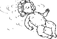 Ребёнок находится в положении на спине в "чепчике русалки" или поддерживается под затылок подвеской, находящейся в руках помощника.Обхватите стопы ребёнка, затем: