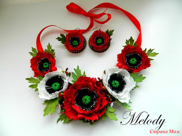 маки шикарные!!!!!! поделитесь секретиком пожалуйста.. как колье делали давно в мечтах у меня сделать колье из цветов.. но пока не могу сообразить как не хватает опыта...