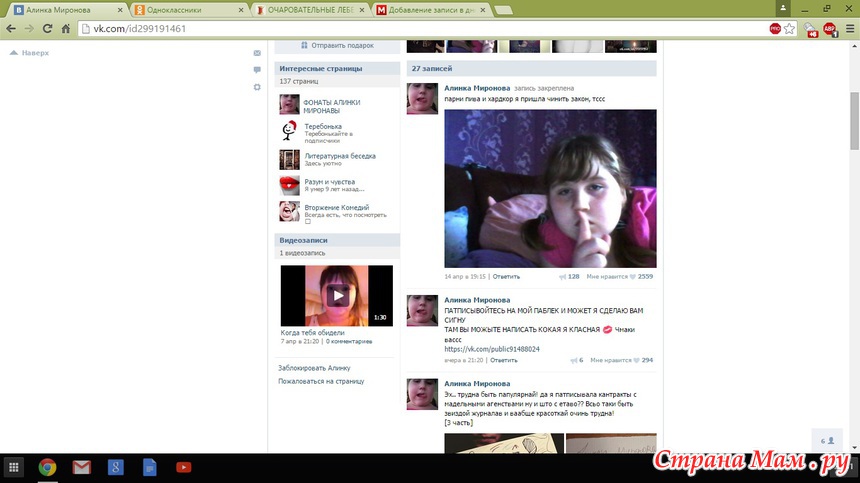 Нечто подобное творится на её страничке в ОК, но там объемы меньше... Девочке 13!!! Мама судя по главным фото - пример для дочери...