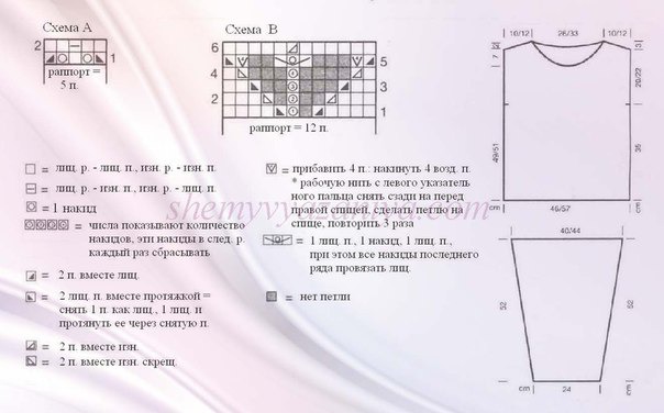 Лиц. и изн. р. вязать согласно схемы В, при этом лиц. р. читать справа налево и изн. р. слева направо.