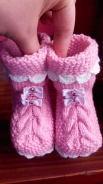 Навязались у меня вот такие пинетки с косами. Я в этом деле не профи прошу строго не судить. Вязала на возраст до года.